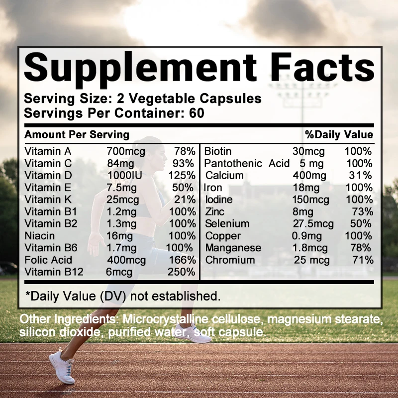 Multivitamin Capsules – Support heart health, fight hair loss, repair skin, nail health, replenish energy, and improve anemia and vitamin deficiencies.